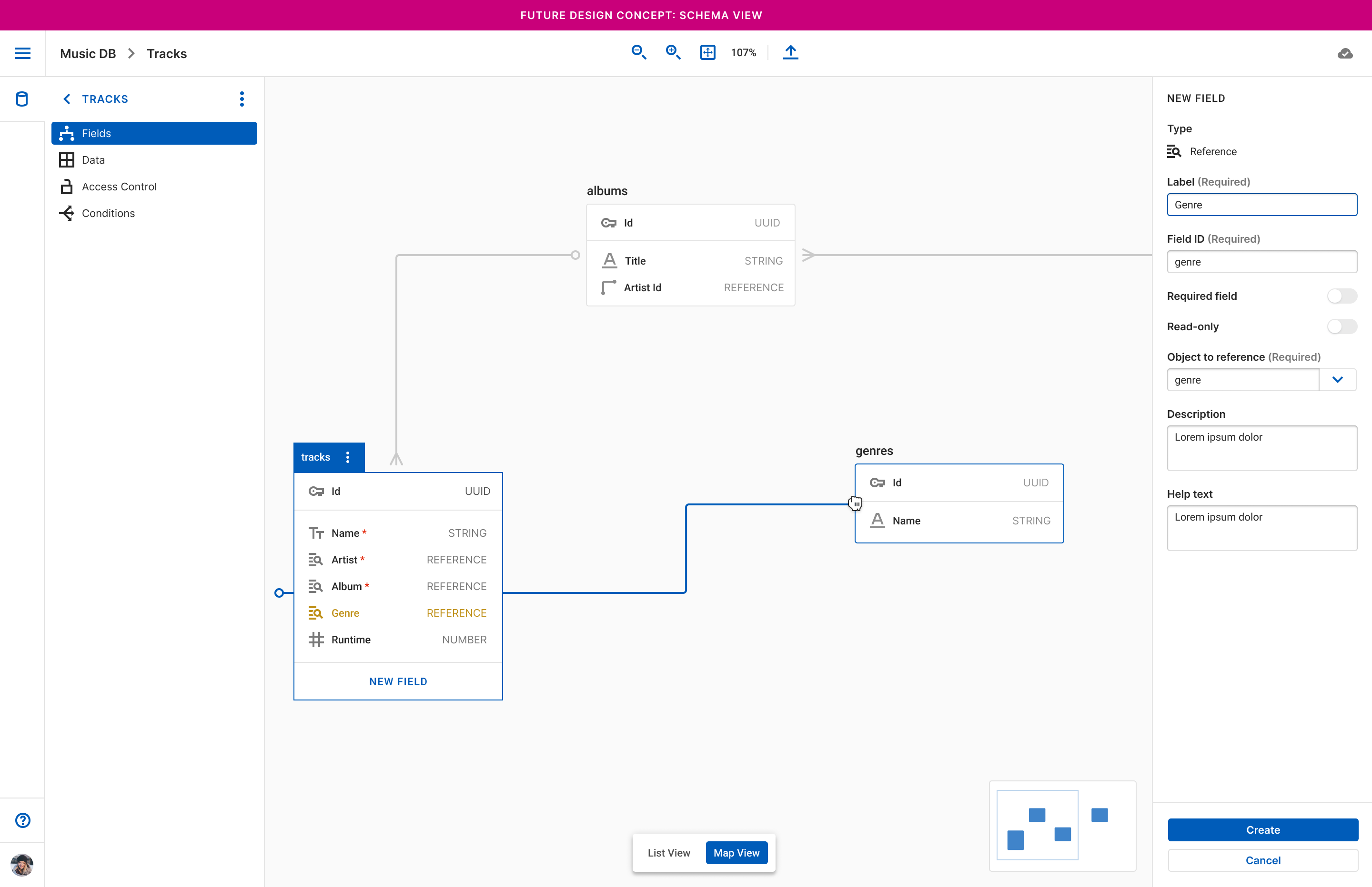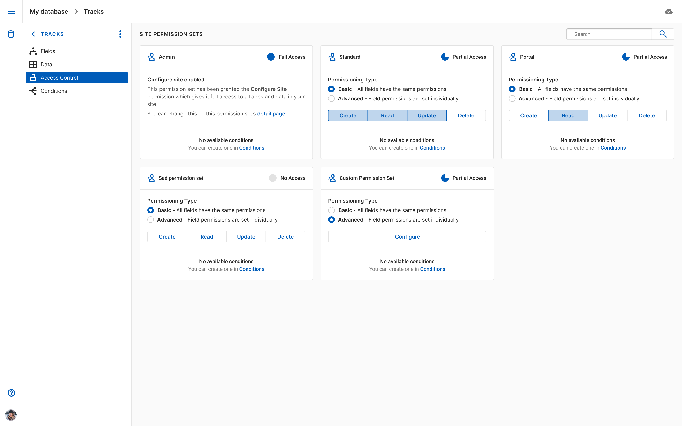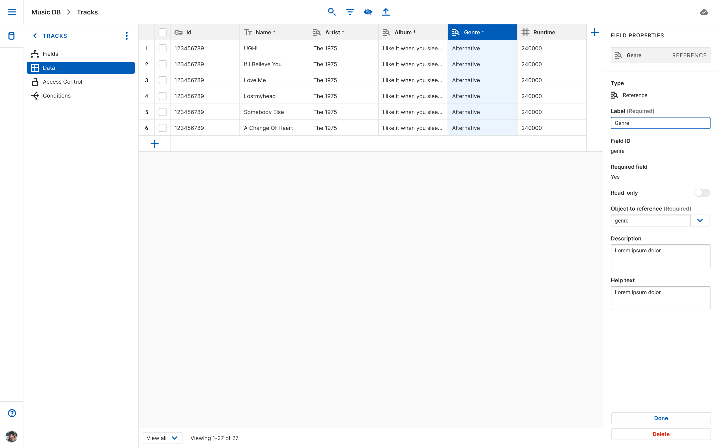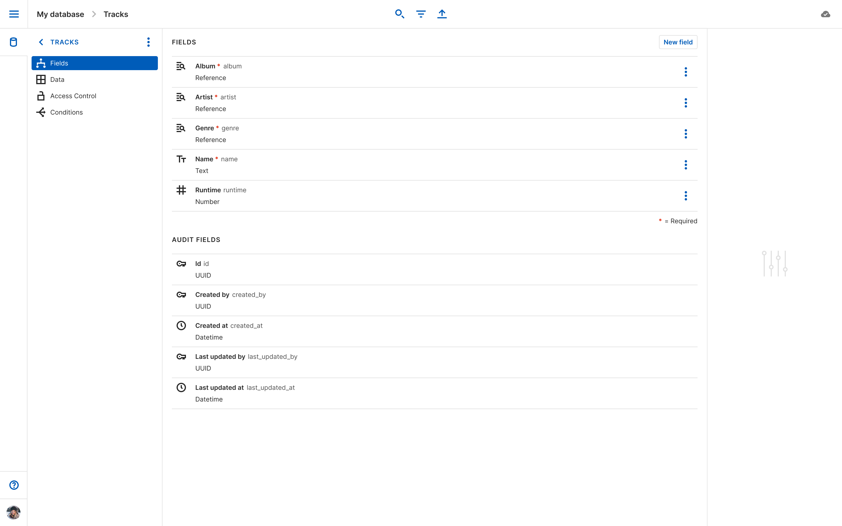 Salesforce, trying to identify common design patterns. I found that almost every other product used the familiar design pattern of a spreadsheet to communicate the way that database tables––or objects, or entities––are structured. Additionally, many SQL field types that non-database folk may not recognize, like ‘float’ and ‘double’, were renamed with more user-friendly labels like ‘number’. And some new, non-standard field types were created for users to account for common use cases: email, phone number, multi-select, etc.